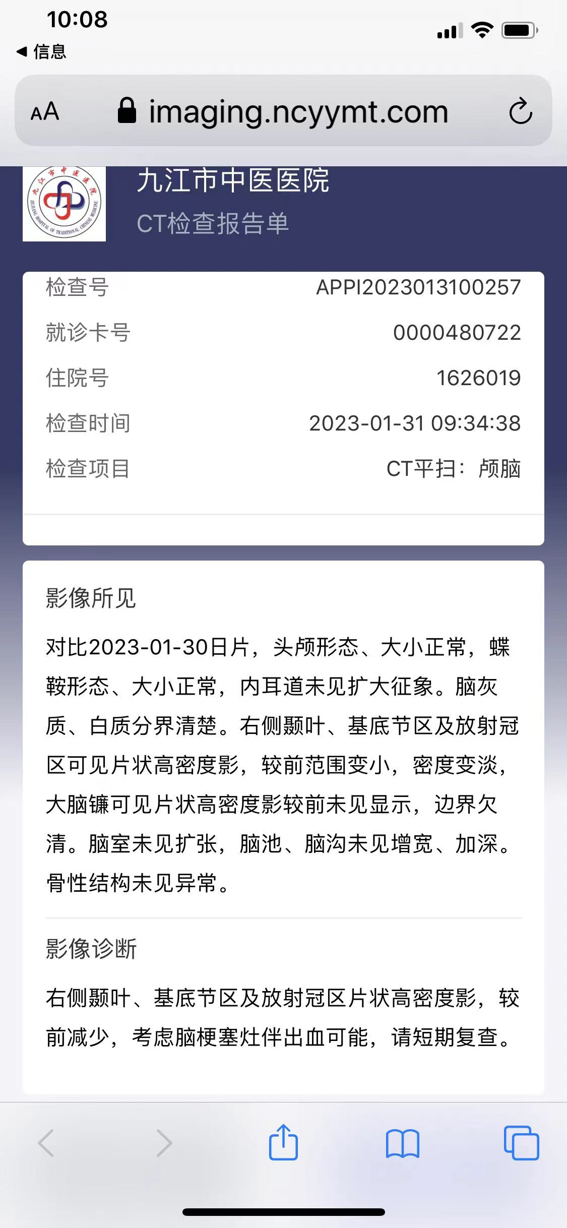 (当时做的检查,结果是脑梗伴脑出血)